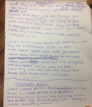 Instead of telling them what NOT to write, we should model and instruct them what they can and should write – in order to make money in the industry. Highlight the fact that the best, (ie- most well-known) MCs all adhere to some basic, professional rules of writing bars: writing to topic; relating a cohesive ‘narrative’; having a beginning, a middle and an end; varying flow and rhyme scheme; and using widely known language and references (rather than just the ones their eight mates know). When they know their favourite rappers write – consciously at first, but instinctually after years of practice – to those guidelines, then they do too.